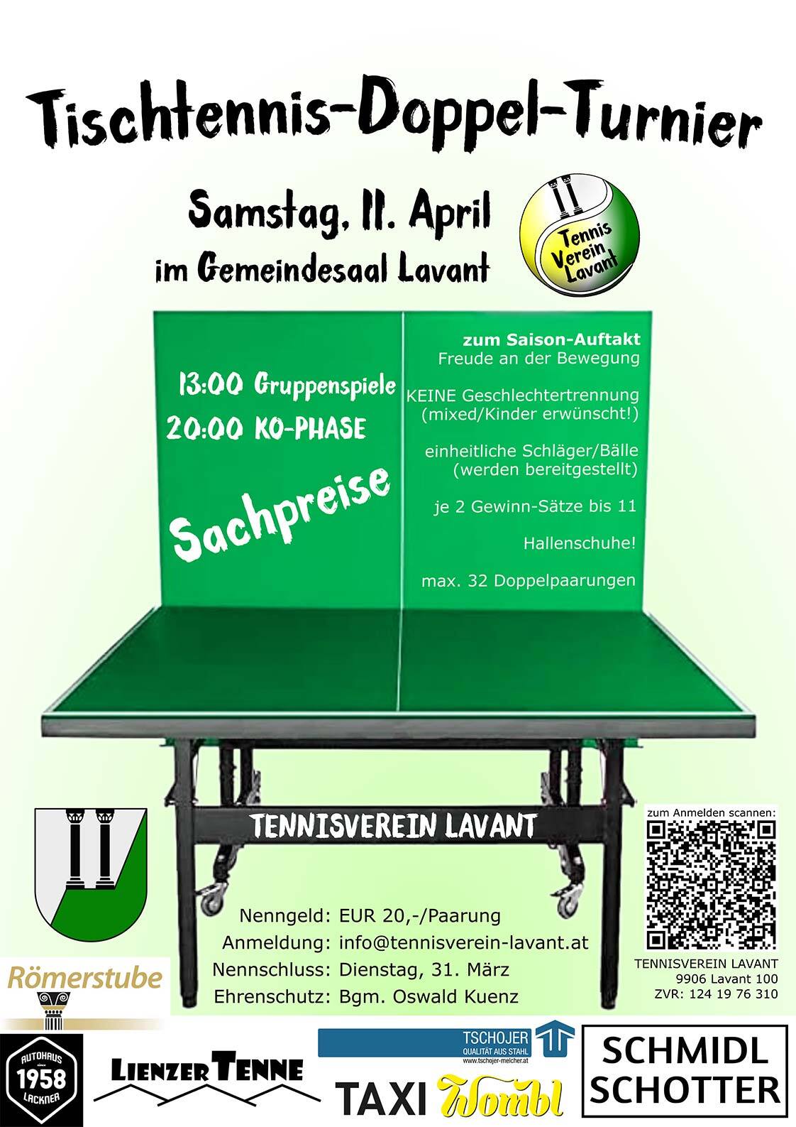 | Sa, 11. April 2026 | Freundschaftliches Tischtennis-Doppel-Turnier im Gemeindesaal zum Saison-Auftakt (→ Ausschreibung) |