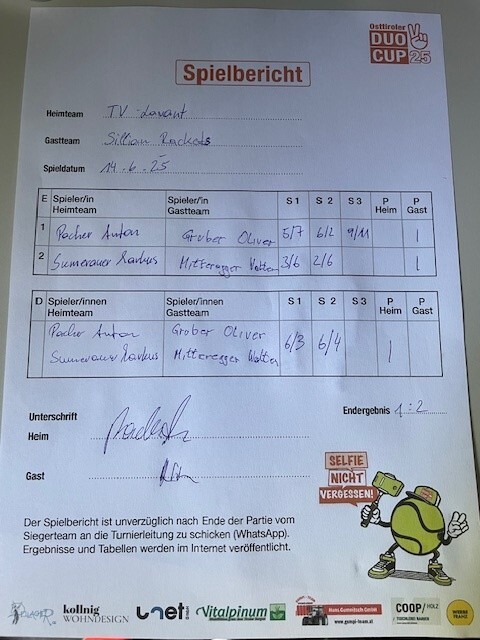 veröffentlicht am 16. Juni 2025 (von Anton P.)Am Samstag, den 14.06.2025 fand das Heimspiel gegen die Mannschaft Sillian Rackets statt.