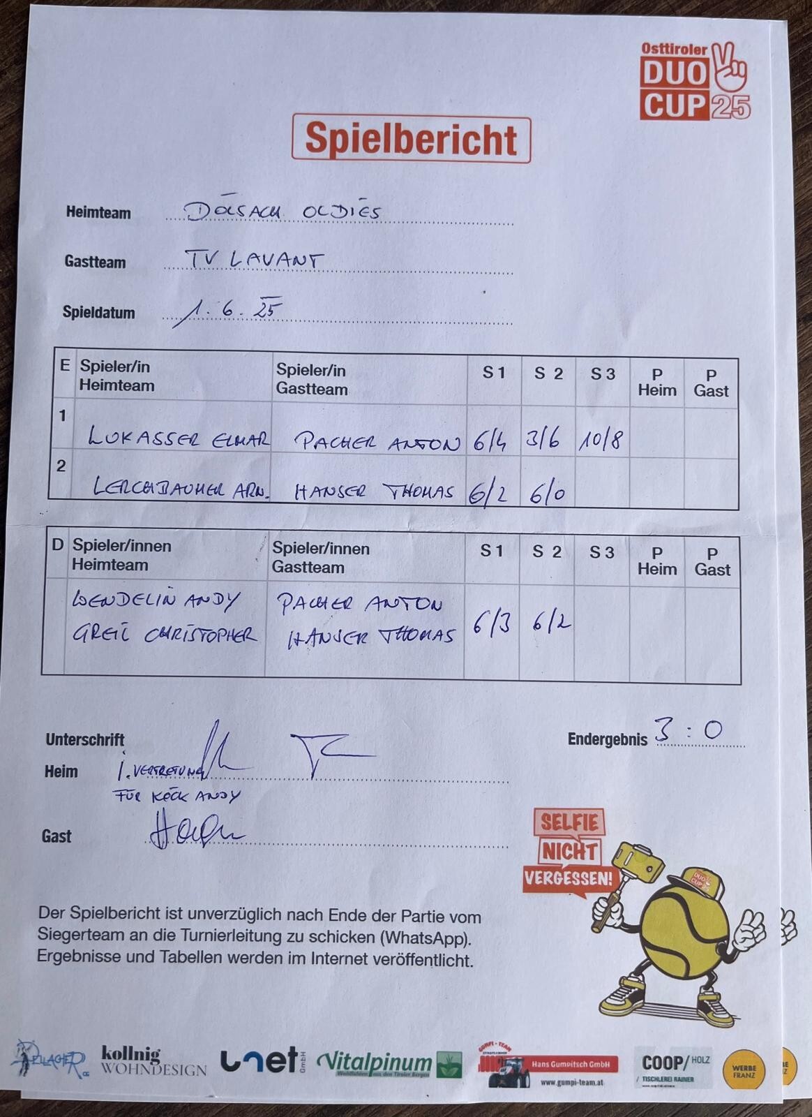 veröffentlicht am 4. Juni 2025 (von Anton P.)Am 01.06.2025 hatten wir das erste Auswärtsspiel beim heurigen Duo-Cup gegen die Dölsacher "Oldies"